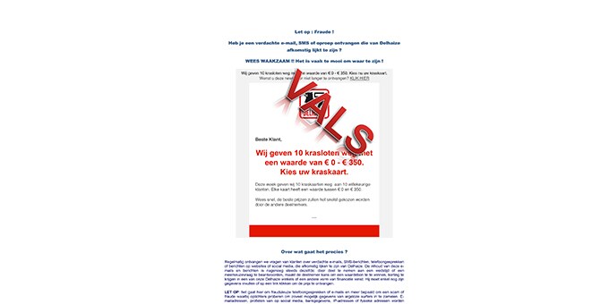 Voorbeelden van recente fraude waarbij de naam Delhaize gebruikt werd