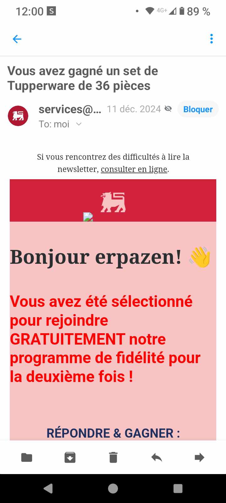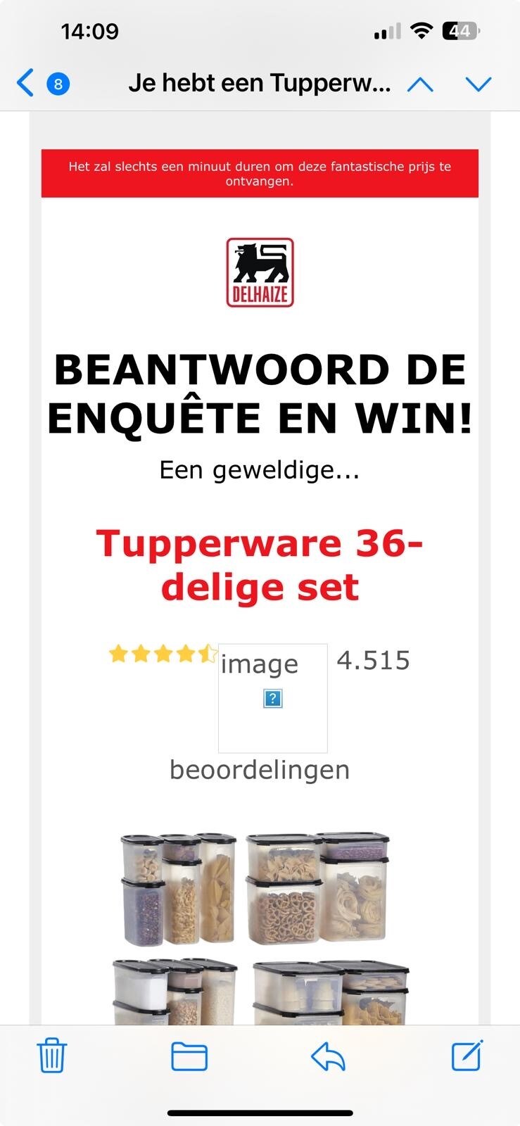 Dit soort berichten staat vaak vol met schrijffouten (maar tegenwoordig worden de berichten alsmaar beter geschreven!). De berichten zijn niet afkomstig van Delhaize of een van haar partners.
