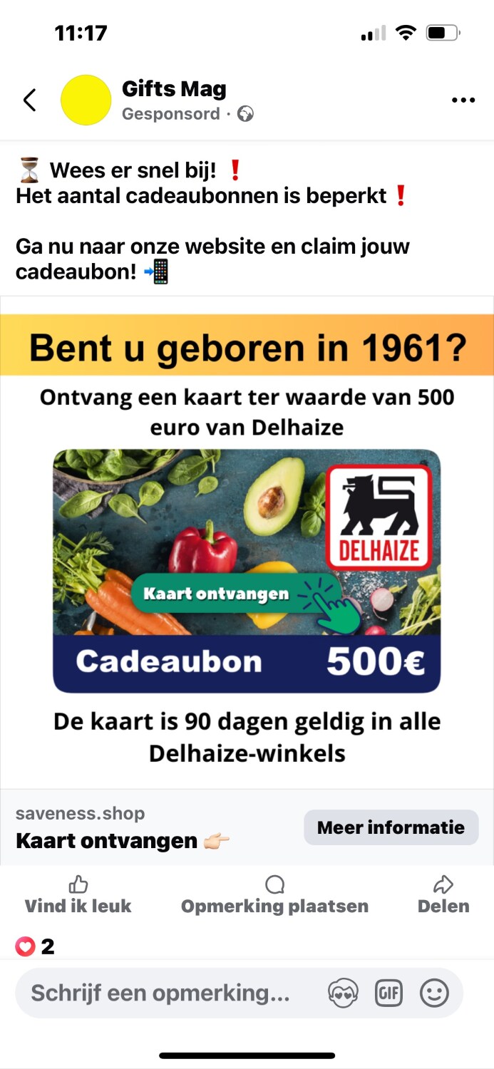 Dit soort berichten verwijst vaak door naar websites waarvan het URL-adres geen adres van Delhaize is (maar er soms op lijkt). Je kan de link controleren door er met je muis over te gaan (maar klik er niet op!).