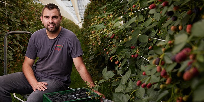 Gijs Royakkers staat sinds 2016 aan het hoofd van Royakkers Fruits, waar hij net als zijn vader rode vruchten teelt met veel passie en respect voor de natuur. Het vak zit bij Gijs echt in het bloed: toen hij zes jaar was, hielp hij na school al enthousiast mee in het familiebedrijf. Die jarenlange ervaring levert frambozen, aardbeien en braambessen van een uitzonderlijke kwaliteit op. We vroegen Gijs naar het geheim van zijn smaakvolle rode fruit.