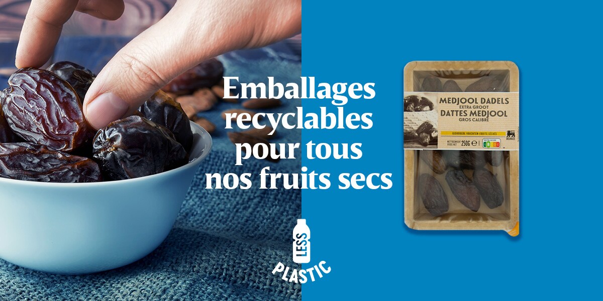 Notre objectif ? Réduire au maximum l’utilisation de plastique là où c’est possible. Là où ce n’est pas possible, nous donnons, pas à pas, la priorité aux emballages recyclables et aux alternatives réutilisables pour nos propres marques. Gardez un œil sur le compteur ci-contre afin de connaître la quantité exacte de plastique que nous économisons !