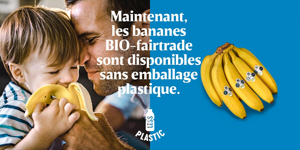 Initiative #4 - Maintenant, les bananes BIO-fairtrade sont disponibles sans emballage plastique.