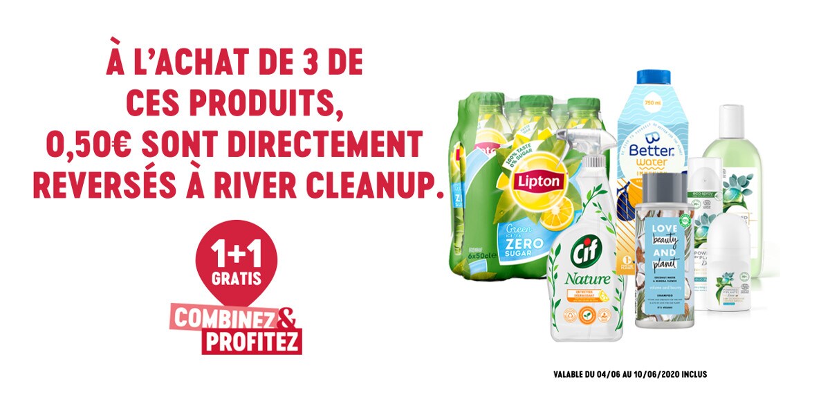 Delhaize et Unilever travaillent ensemble ! Nous soutenons ainsi River Cleanup en les aidant à nettoyer les rivières afin d’éliminer tout le plastique qui s’y trouve. Comment nous leur apportons notre soutien ? C’est simple : si vous achetez 3 de nos produits participants, 0,50€ sont directement reversés à River Cleanup. Curieux de savoir de quels produits il s’agit ? Retrouvez-les ici !