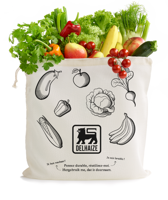 Elke dag zet Delhaize stappen voor meer duurzaamheid. Voor minder CO2, voor meer duurzame visvangst, meer fairtrade en bio, meer lokale producten en ook… minder plastic! Zo gebruikten onze klanten jaarlijks 80 miljoen plastic zakjes om fruit en groenten in mee te nemen. Sinds 2018 niet meer! We vervingen ze al door papier en ook door herbruikbare katoenen tasjes, verkrijgbaar in de groente- en fruitafdeling in al onze winkels. Een simpele oplossing voor een groot verschil.